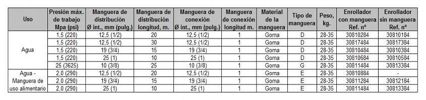 | - Enrolladores de manguera de tamaño medio totalmente |